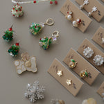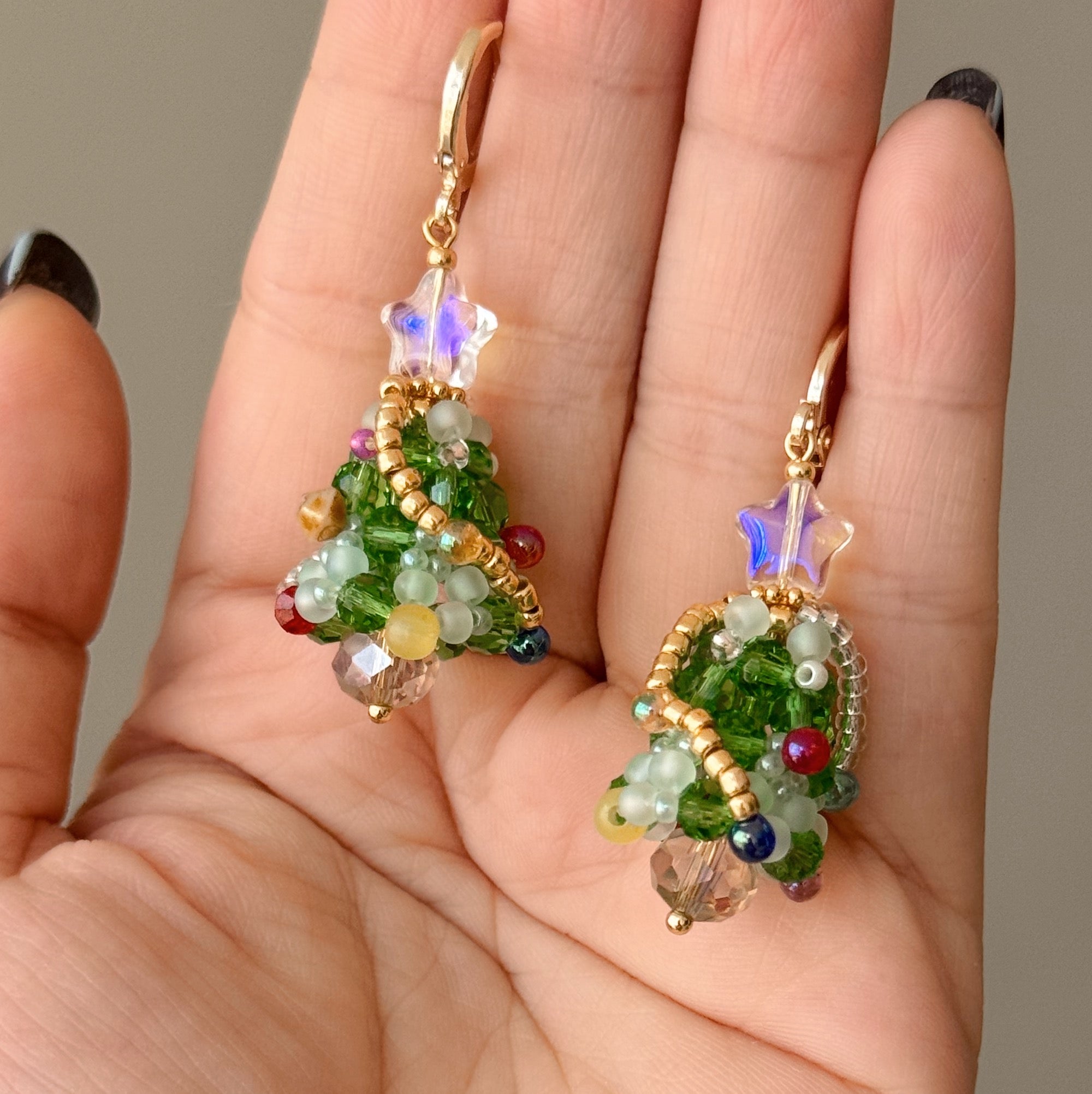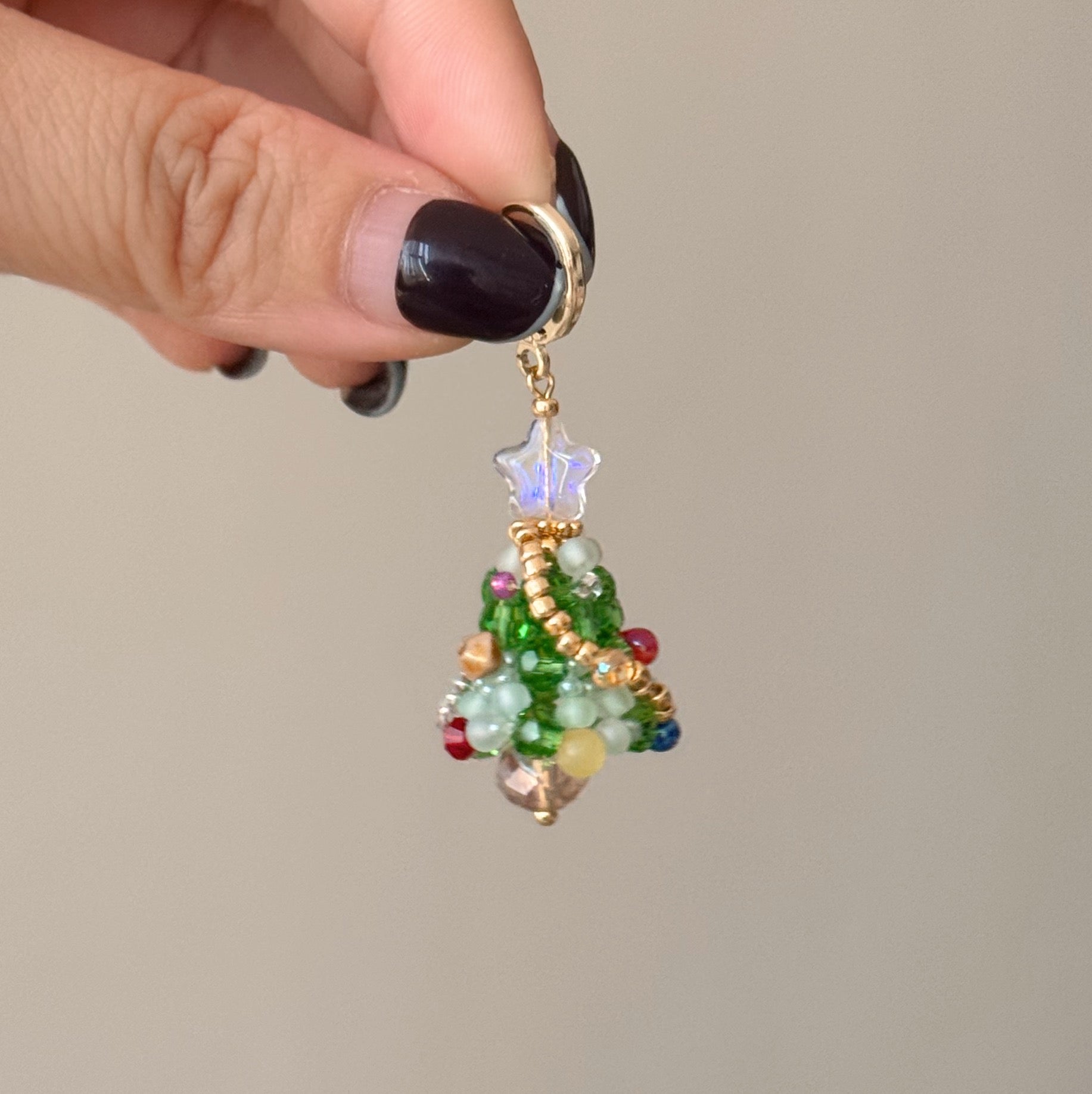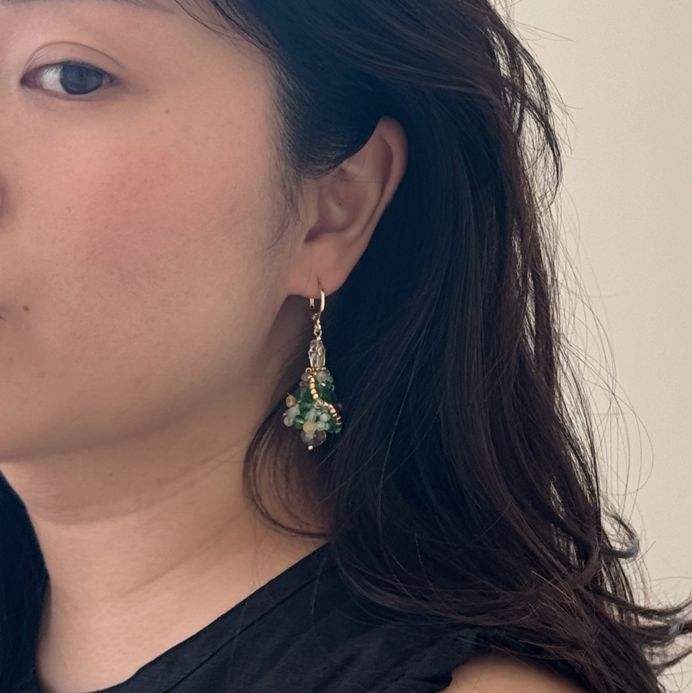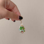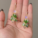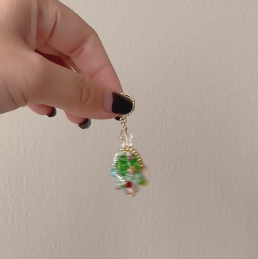 A beaded Christmas Tree huggie earring design. All handmade with Japanese beadings.