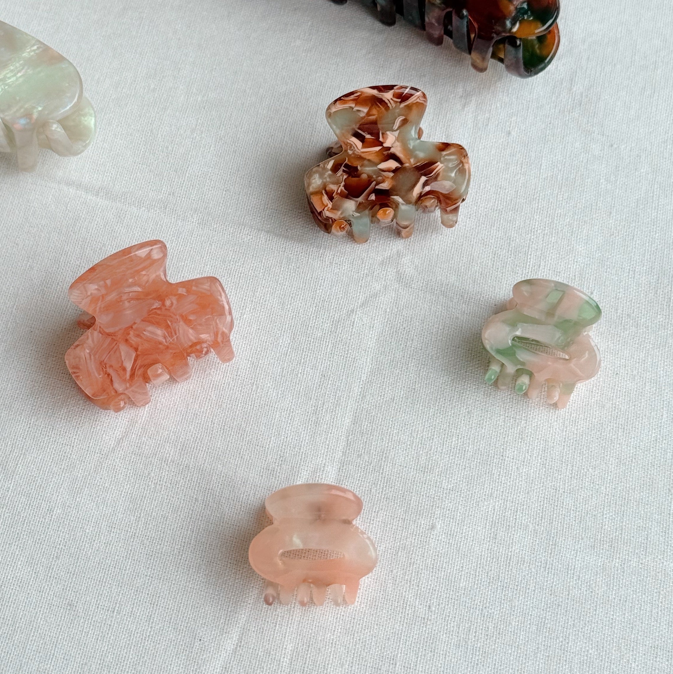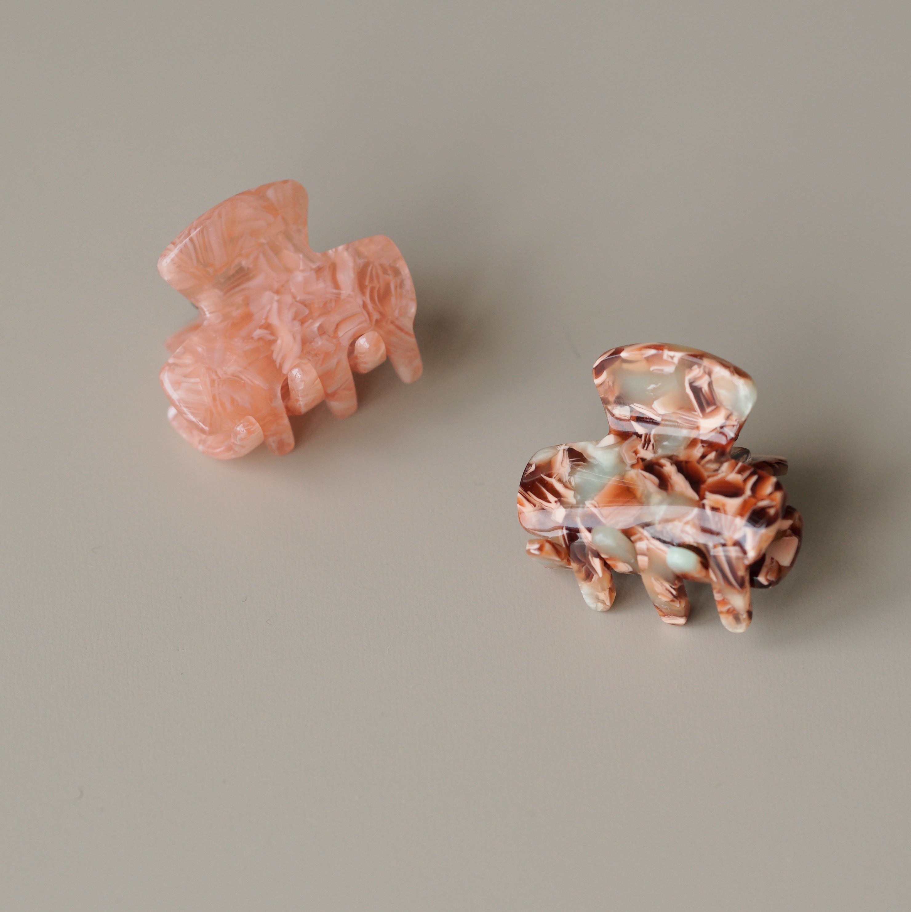 Comes in two wearable and very spring colors, this Errands Medium Claw clip helps tuck half your hair in place. The pink is a very nice salmon pink and the brown reminds me of the mid-century marble table top in the houses in Silverlake.