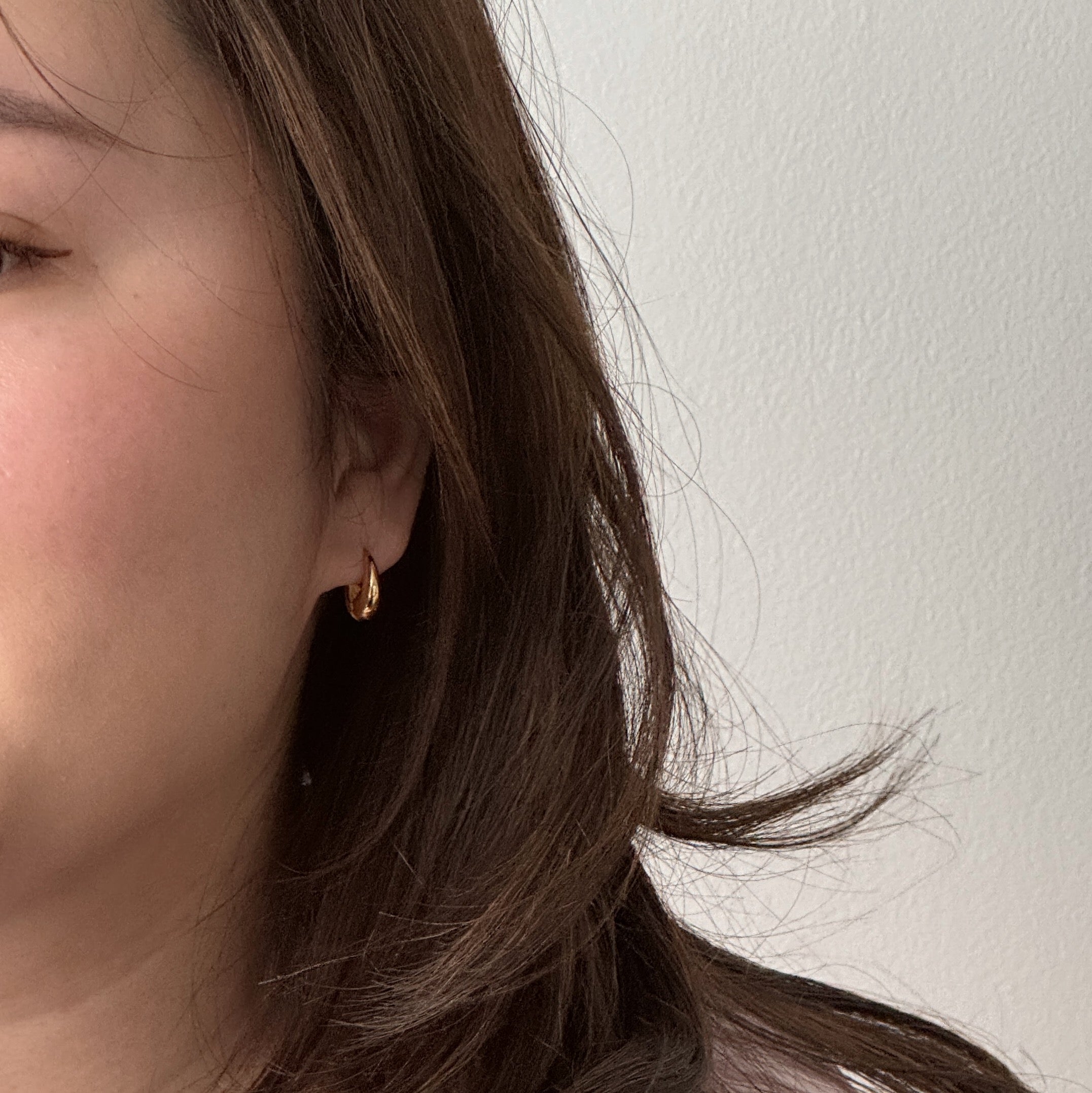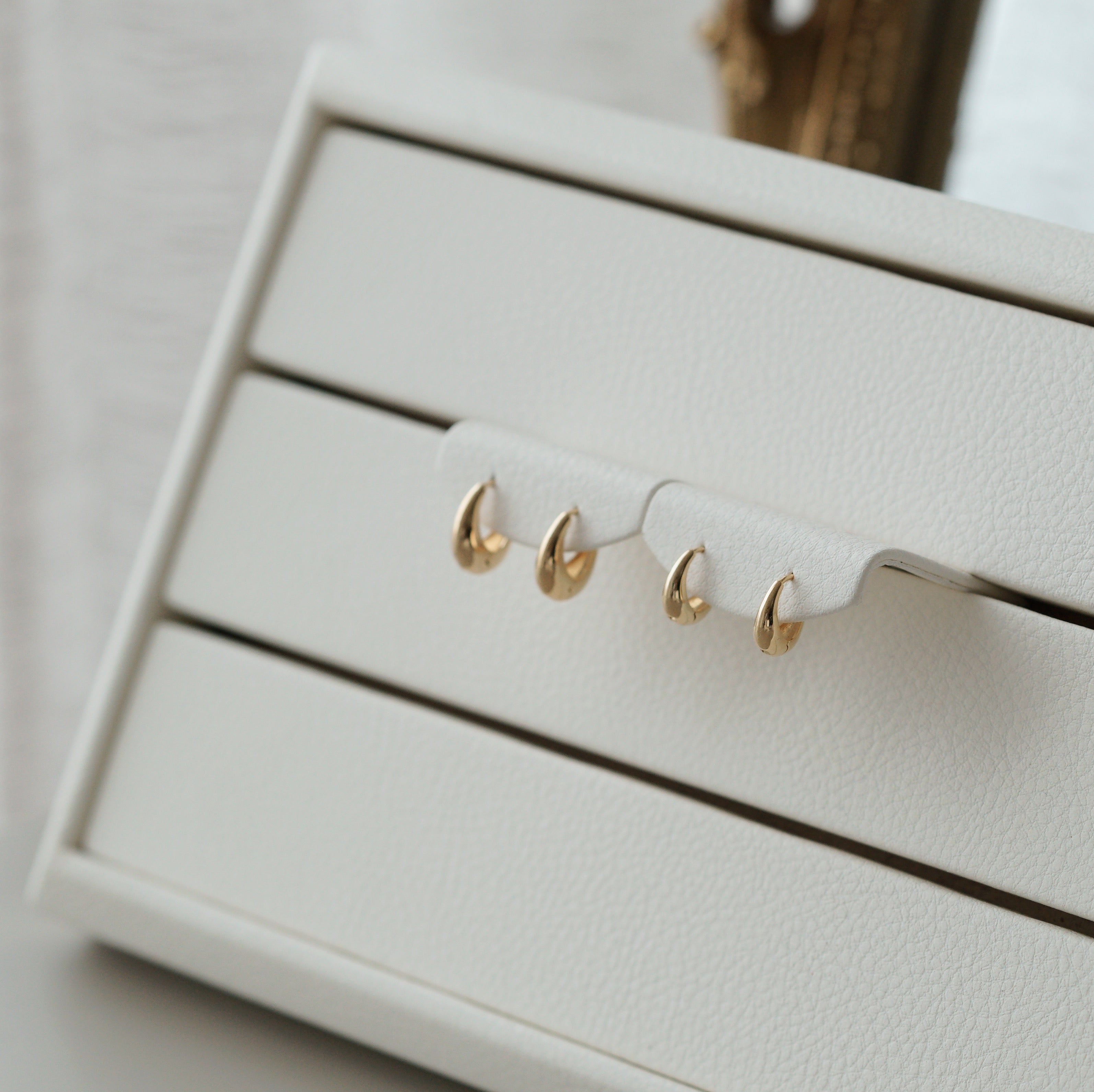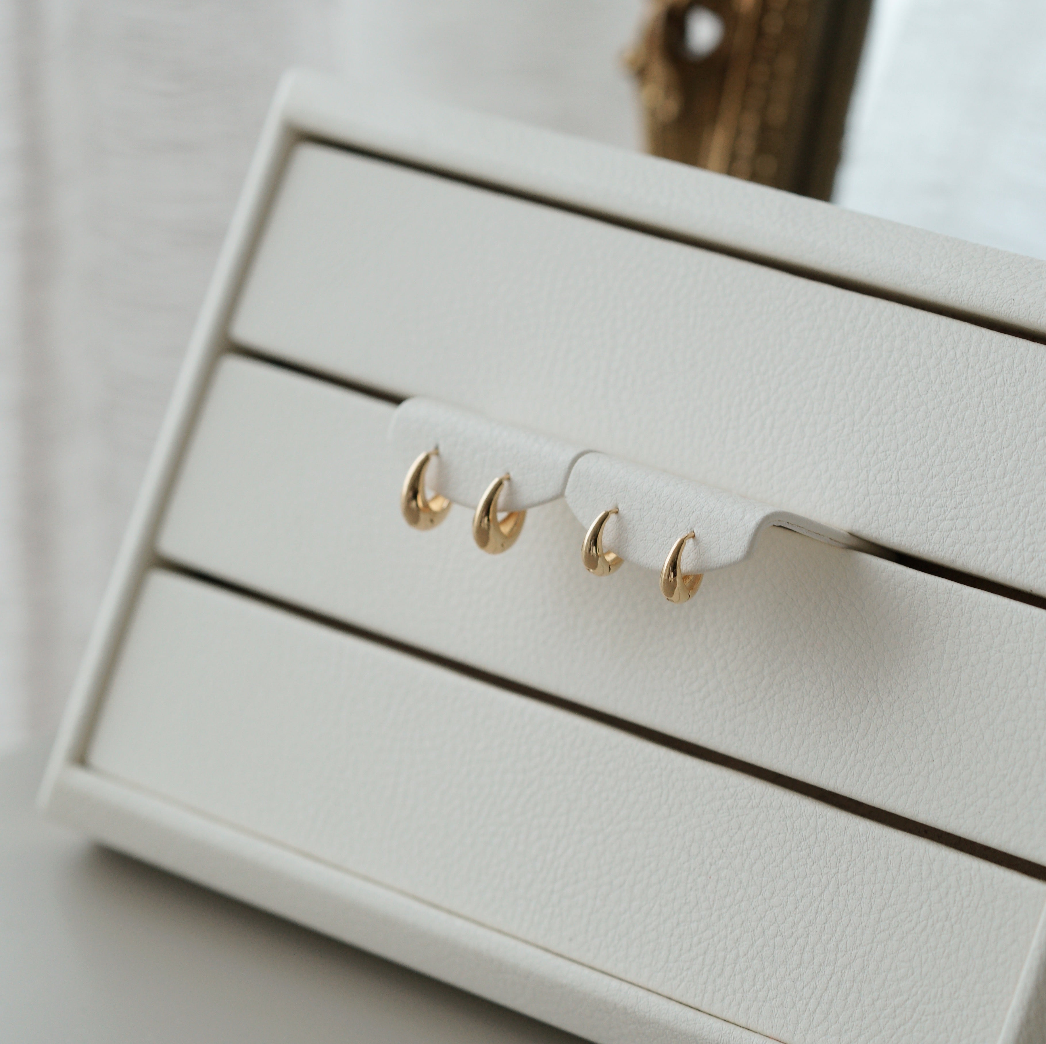It may look like another common earring but this is probably going to be my next favorite earring. It is delicate at the top and thicker at the bottom. Chubby oval is best to describe it. It comes in two sizes.