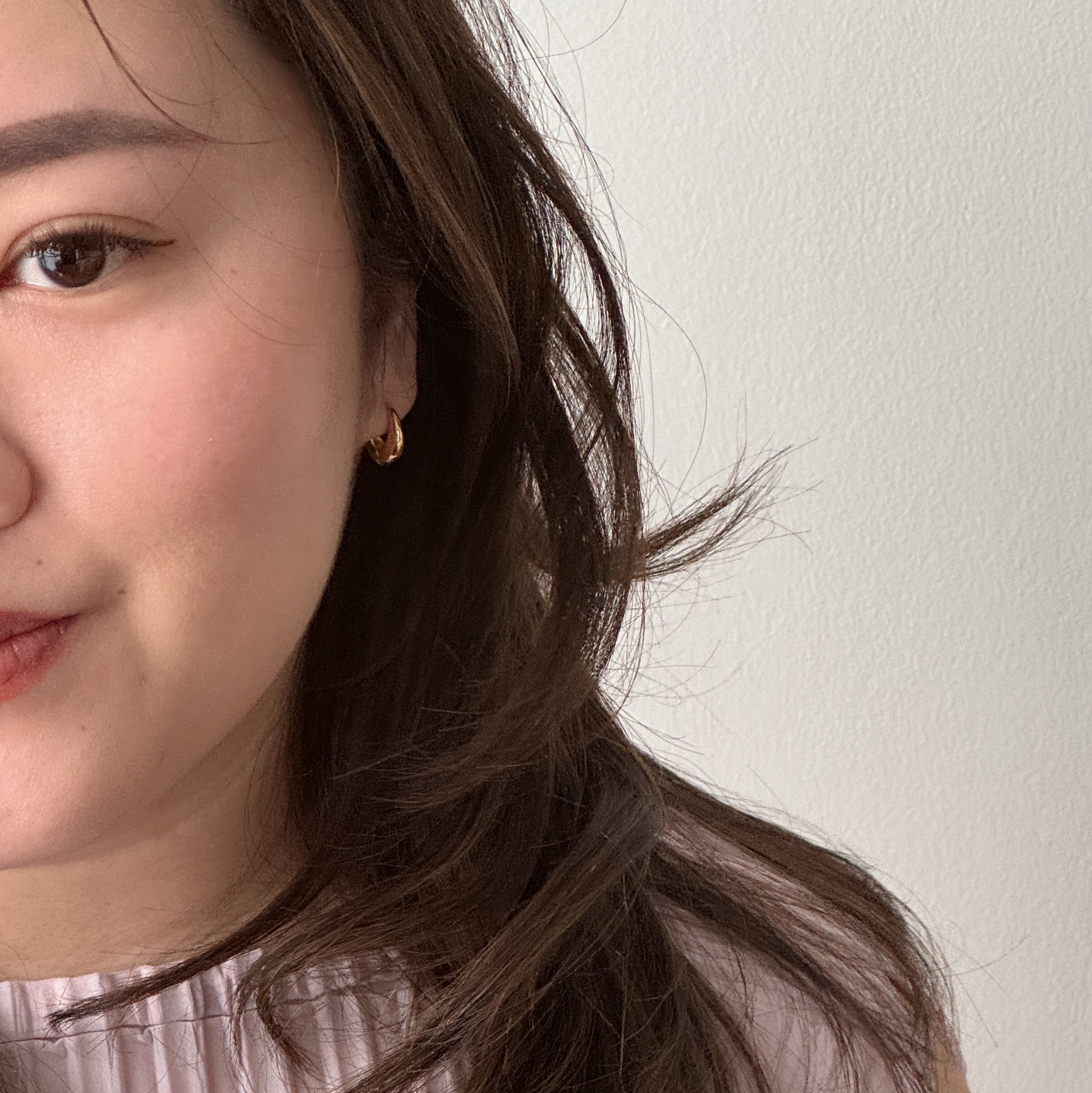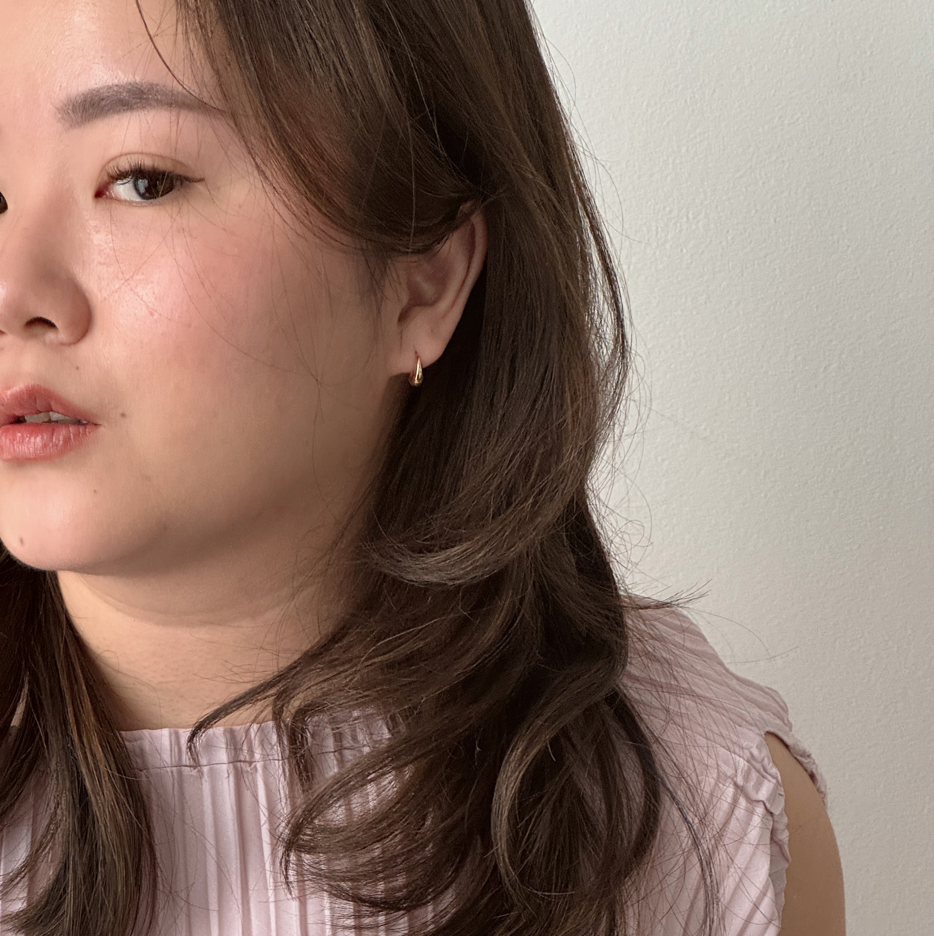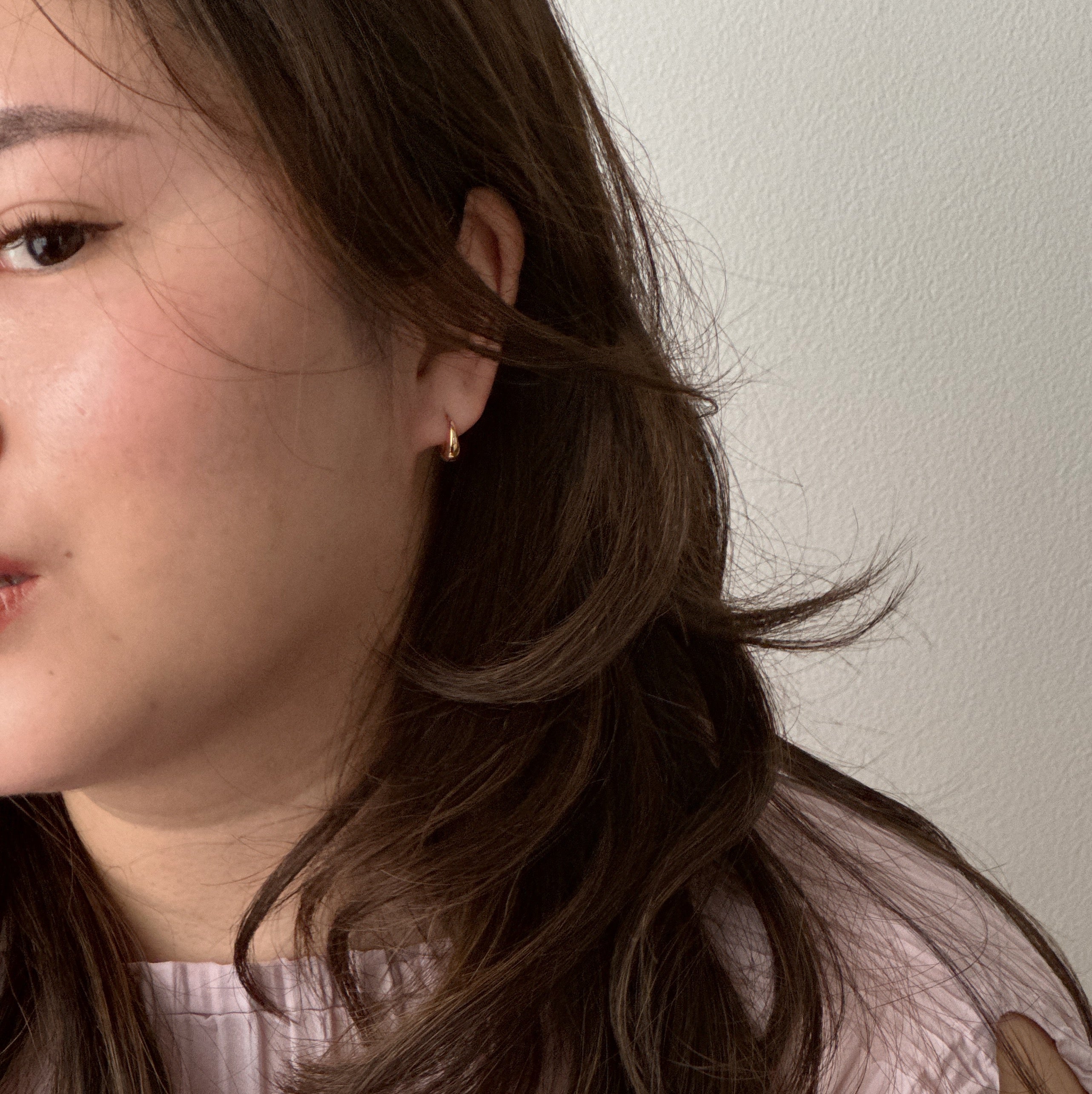 It may look like another common earring but this is probably going to be my next favorite earring. It is delicate at the top and thicker at the bottom. Chubby oval is best to describe it. It comes in two sizes.