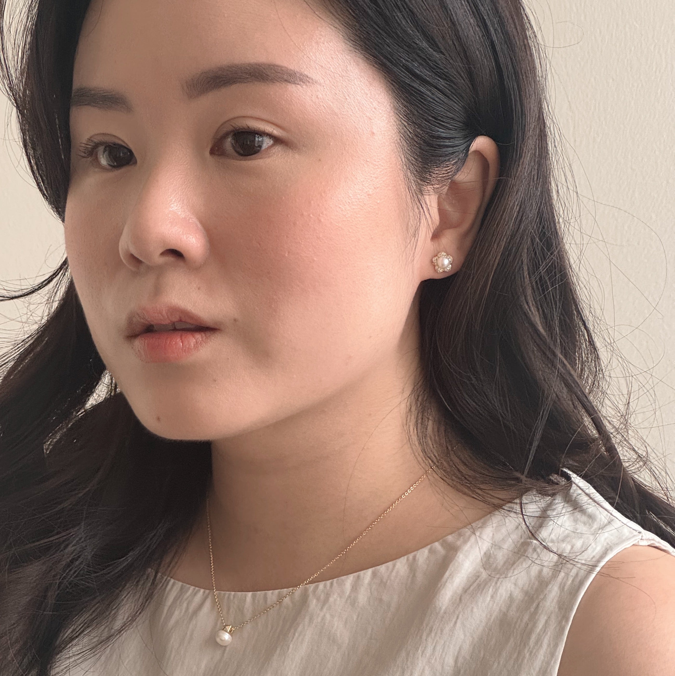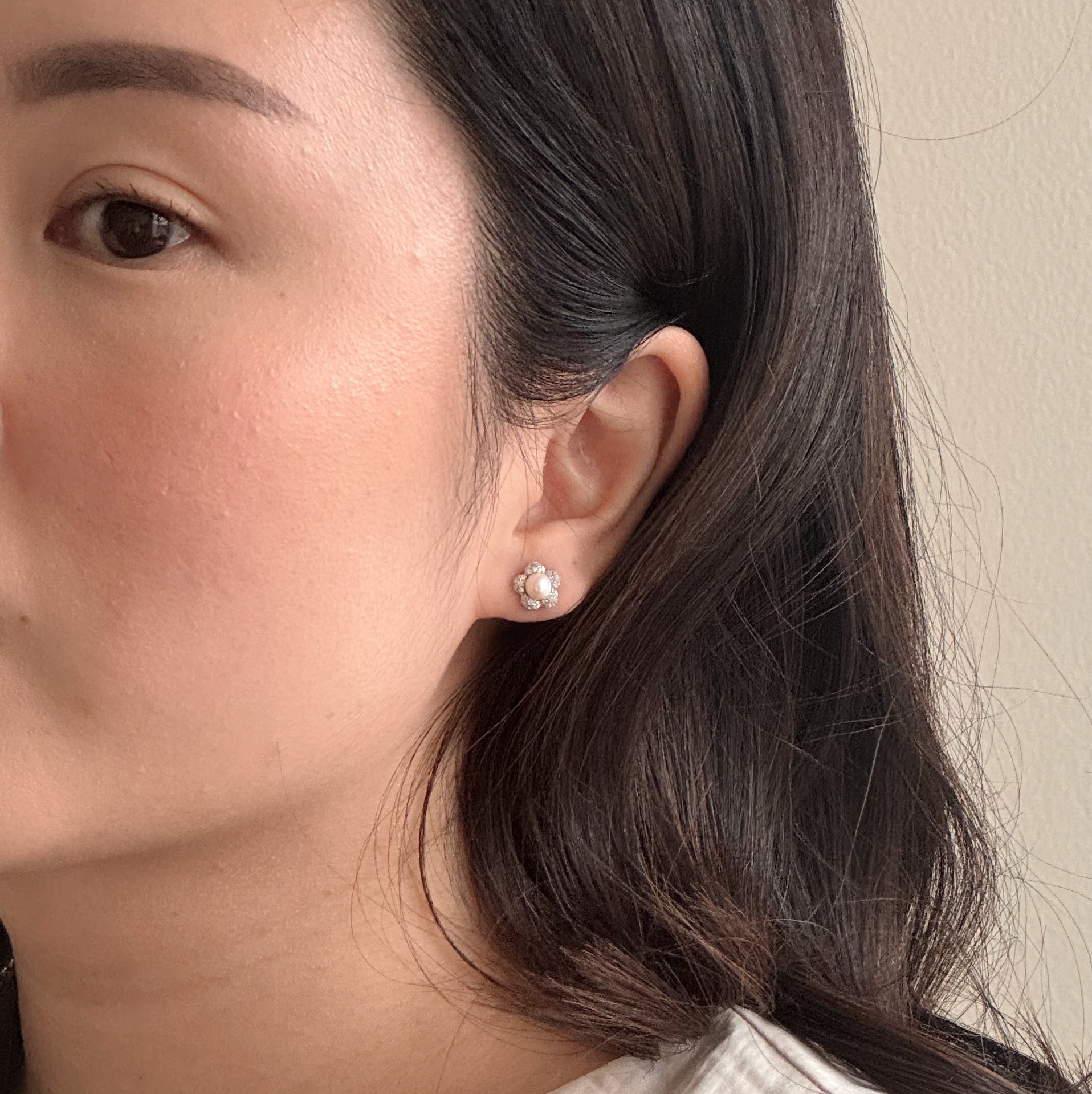 Daria is one of my favorite designs in this collection. It's so cute! It's a simple flower shaped earring with a pearl in the middle.