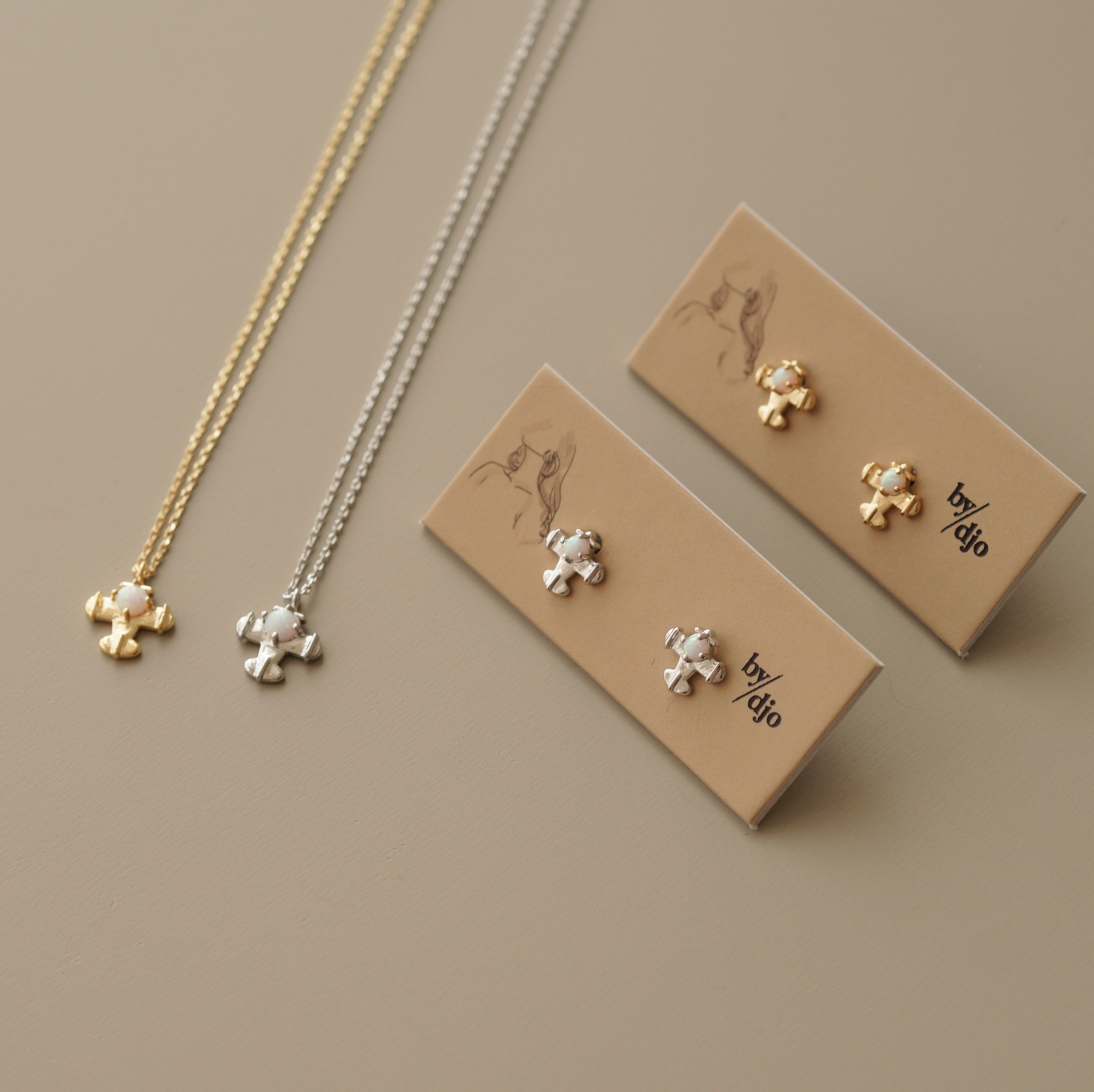 Hart is inspired by Amelia Earhart who was an American aviation pioneer. Hence, when i saw this earring and necklace, it immediately reminds me of her. It's in a shape of a vintage airplane with an opal detail.