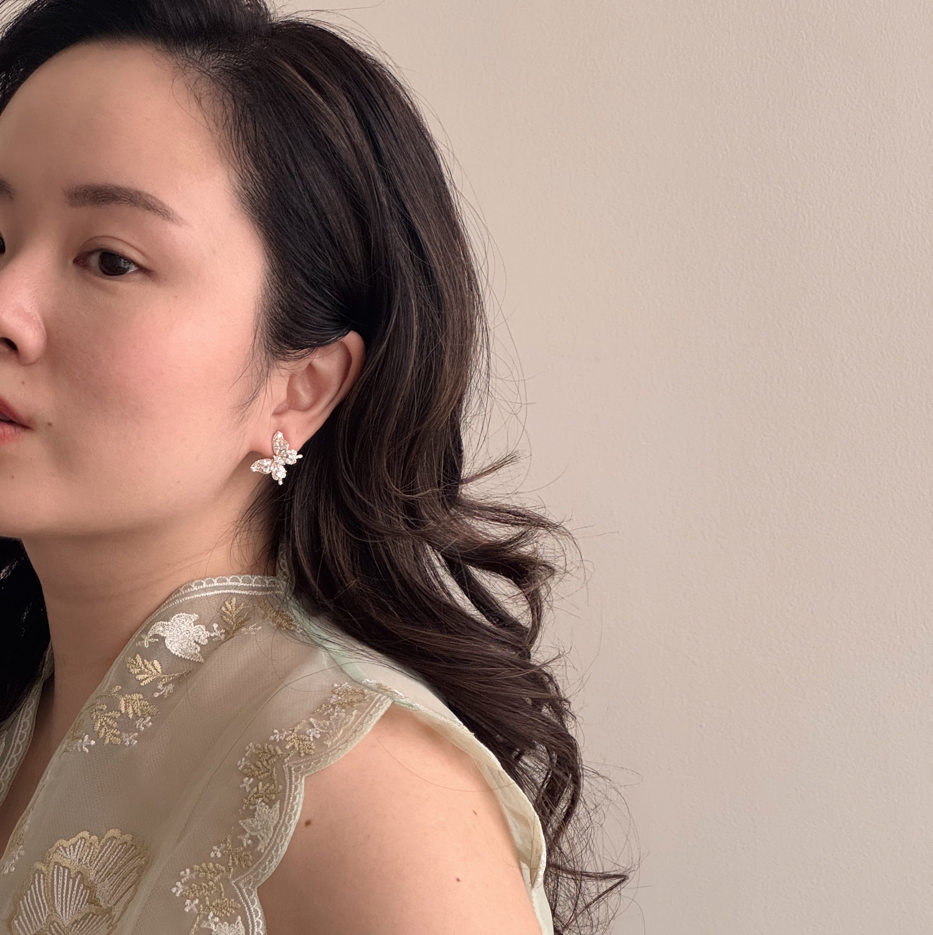 Oh... This butterfly earring is one that you need to grab if you love crystals. The setting on this earring delivers. A good mix between big, medium and small crystals. Super pretty for your dressier occasion.