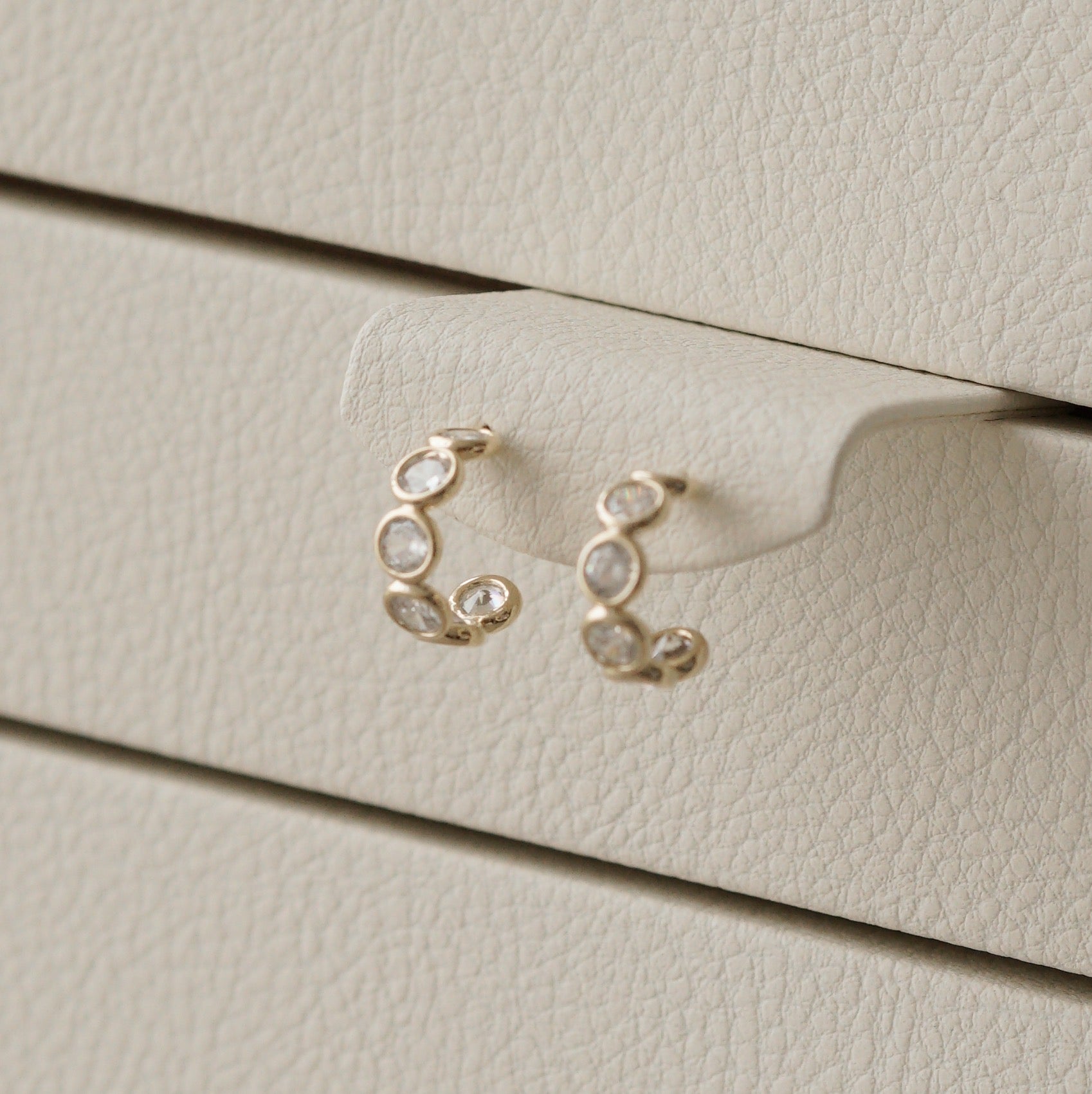 As what the name describes, it’s a crystal clear hoop that’s designed with individual crystals with a gold border. Very straightforward design, no frills. Great for everyday.