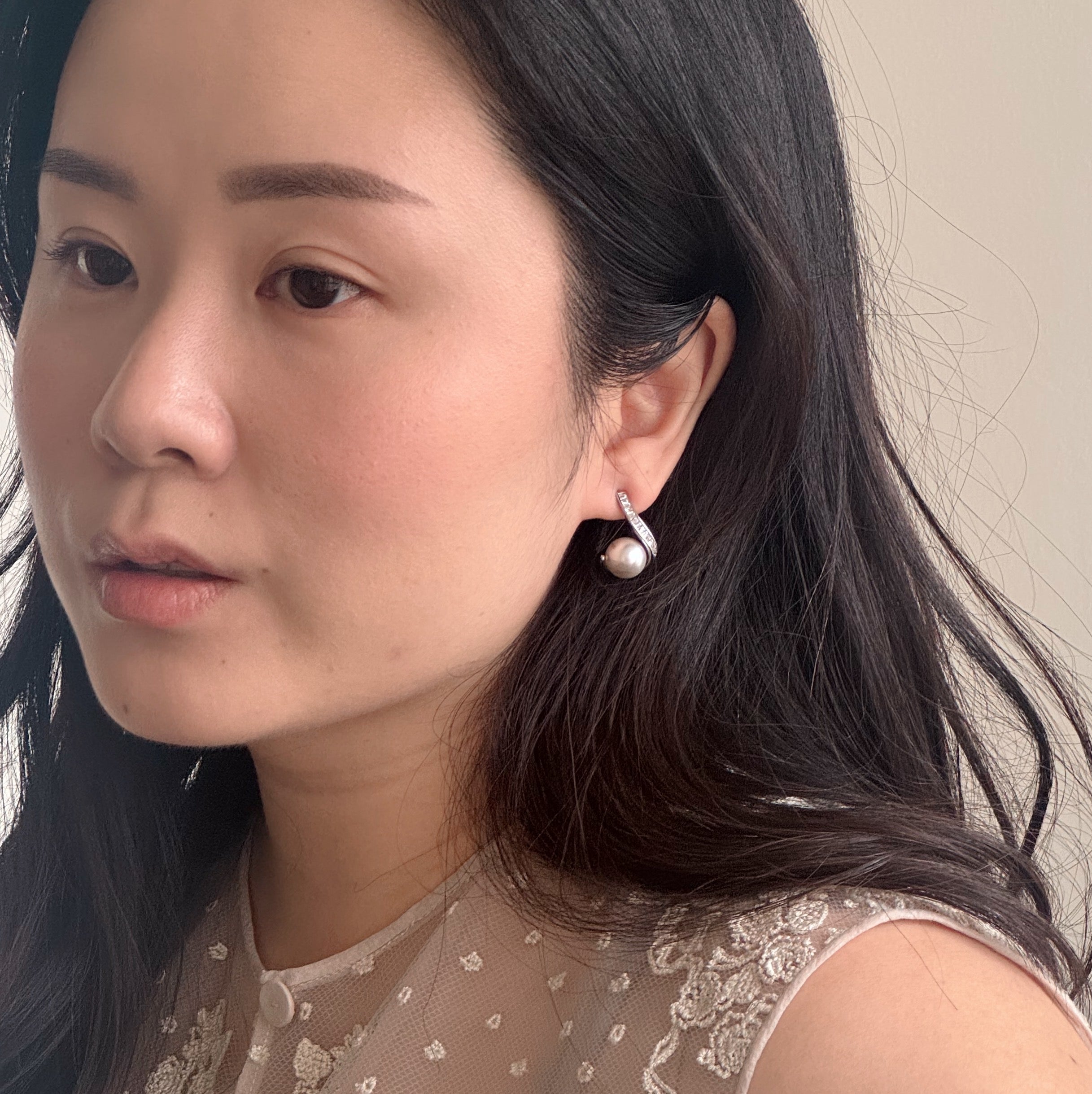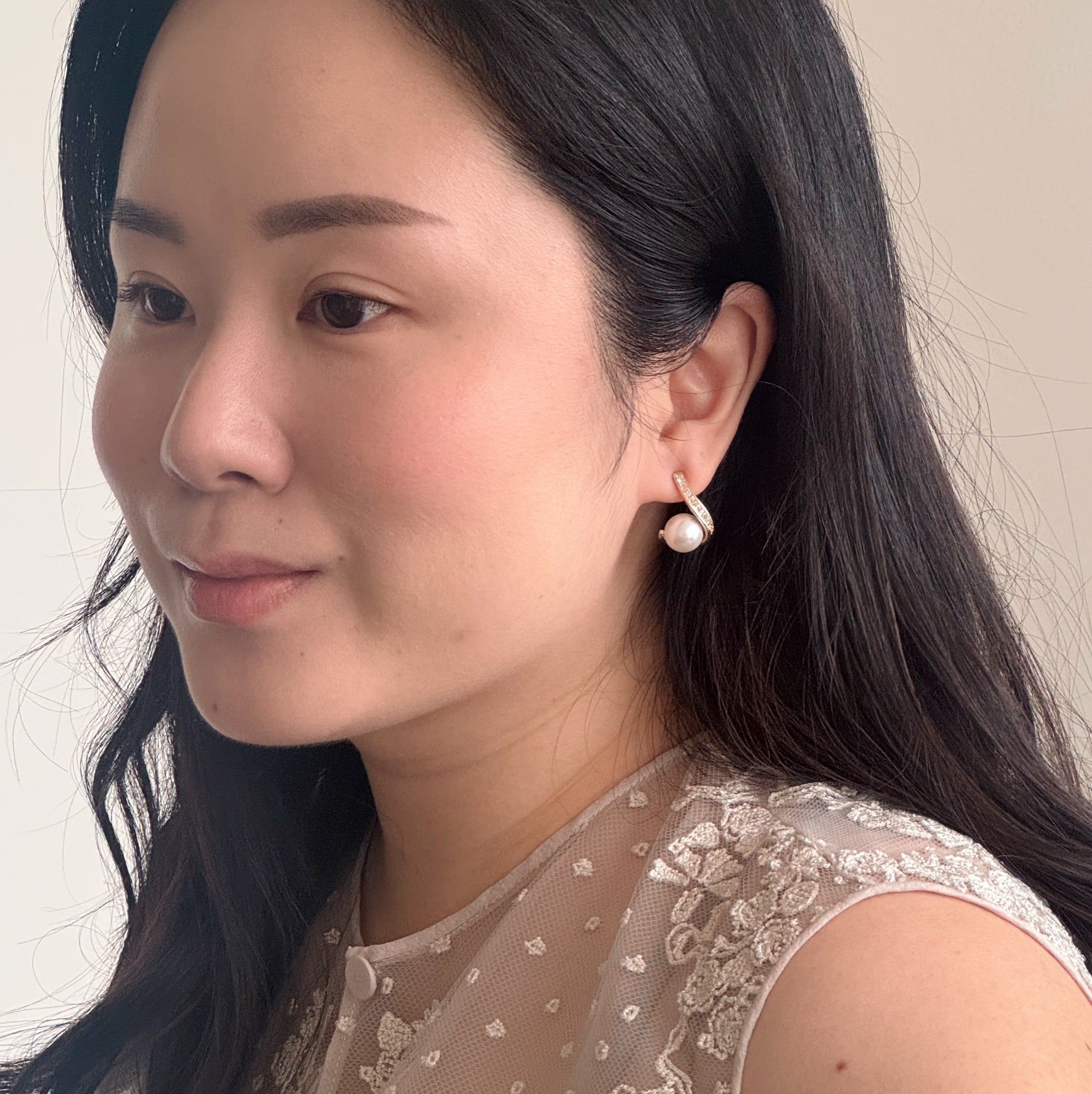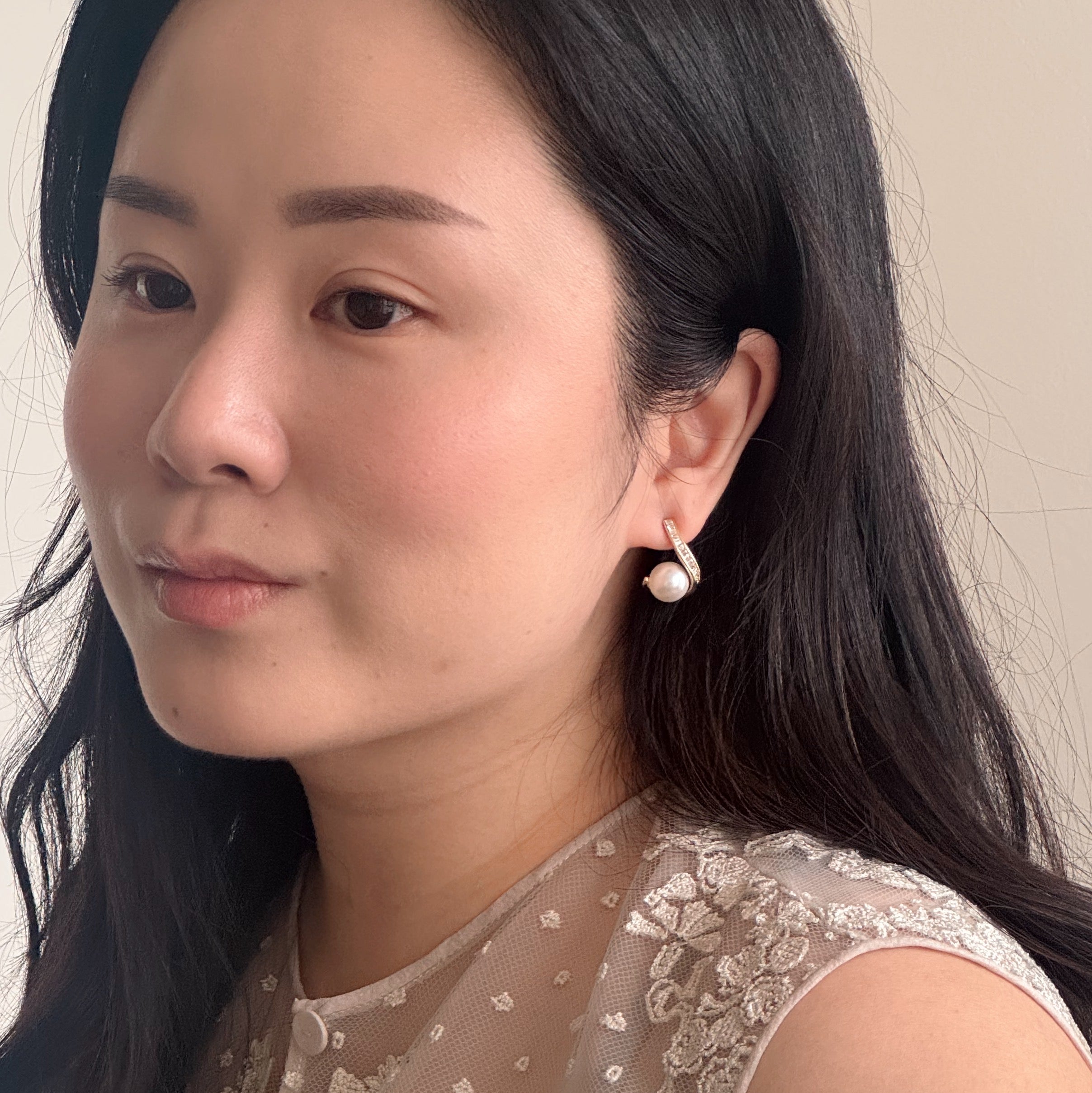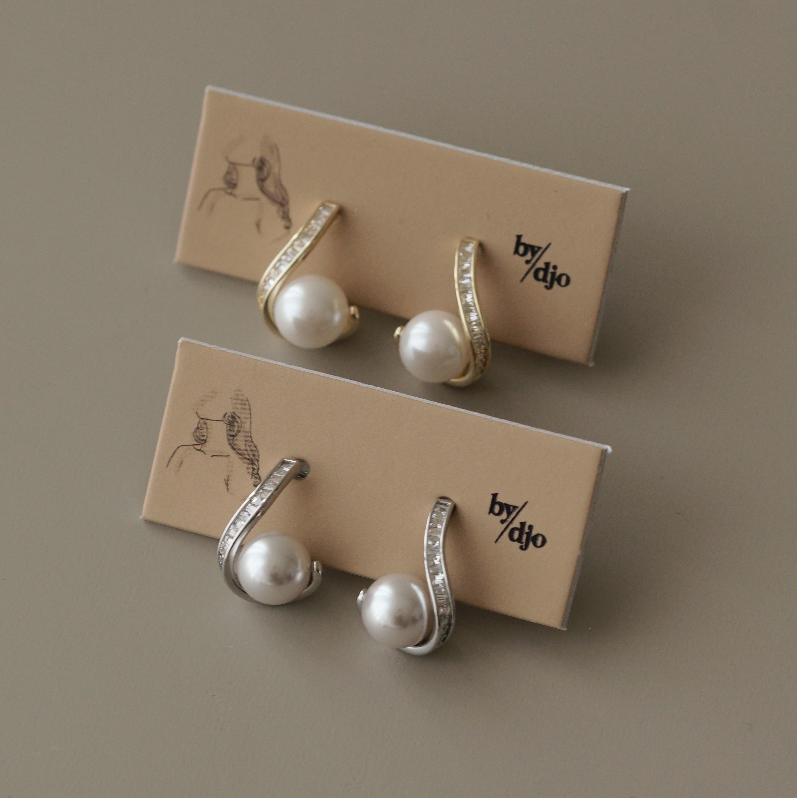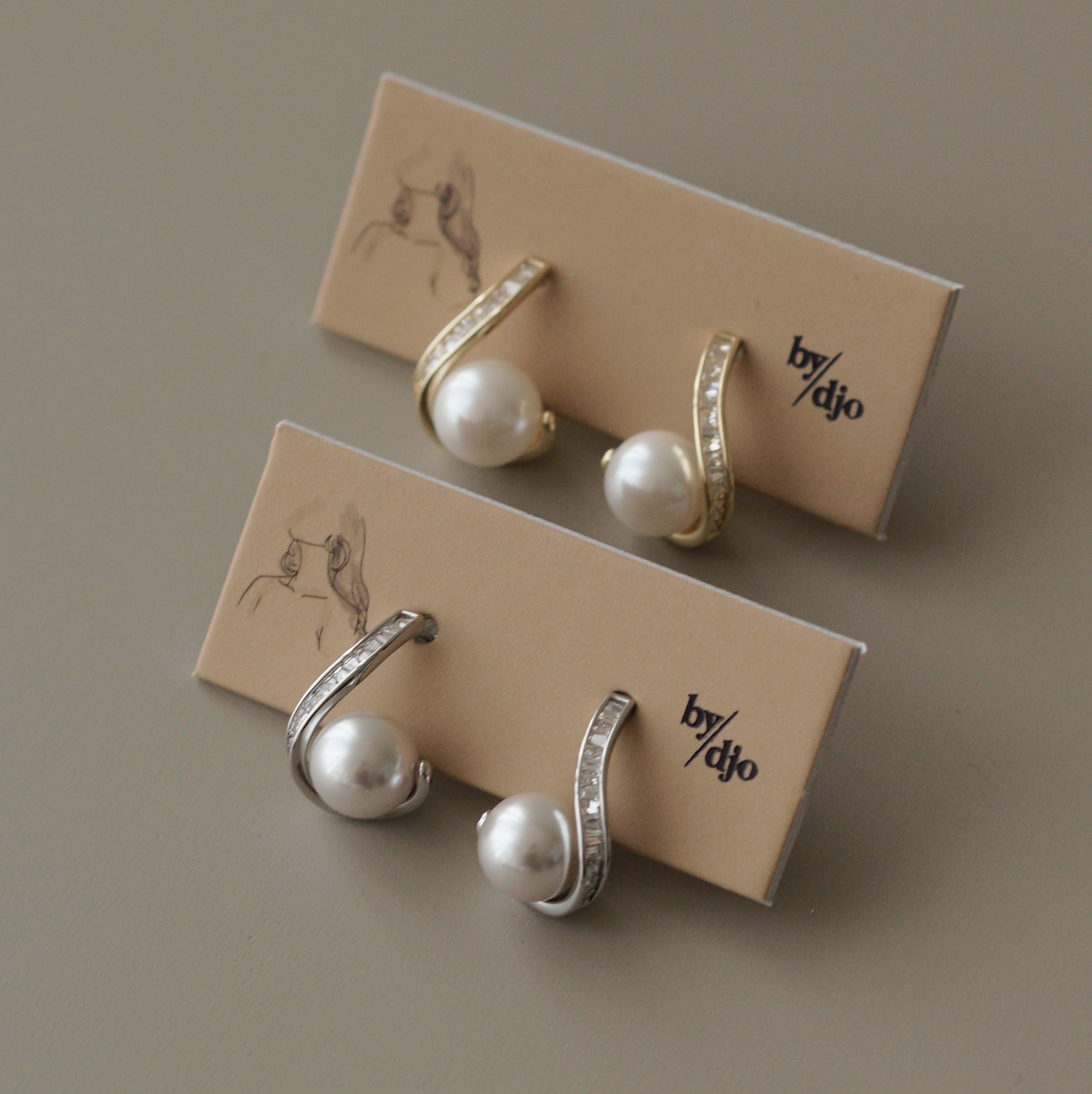 A beautifully curved earring design, finished with cubic stones and an imitation pearl. This type of design is trickier than usual to craft. This is also a piece that you can definitely share with your mum and sisters. It's a piece that you can wear to dressier events.