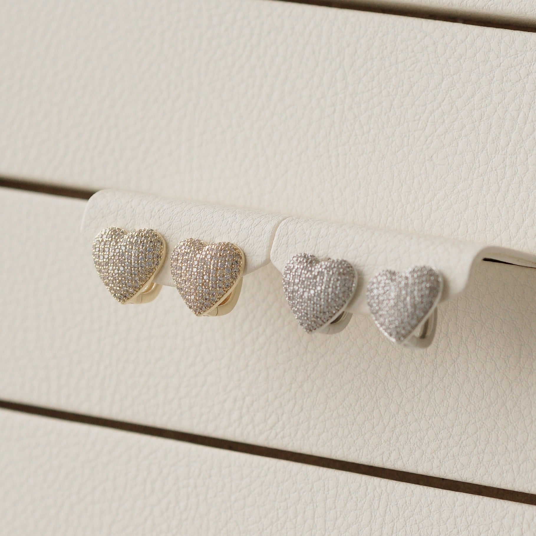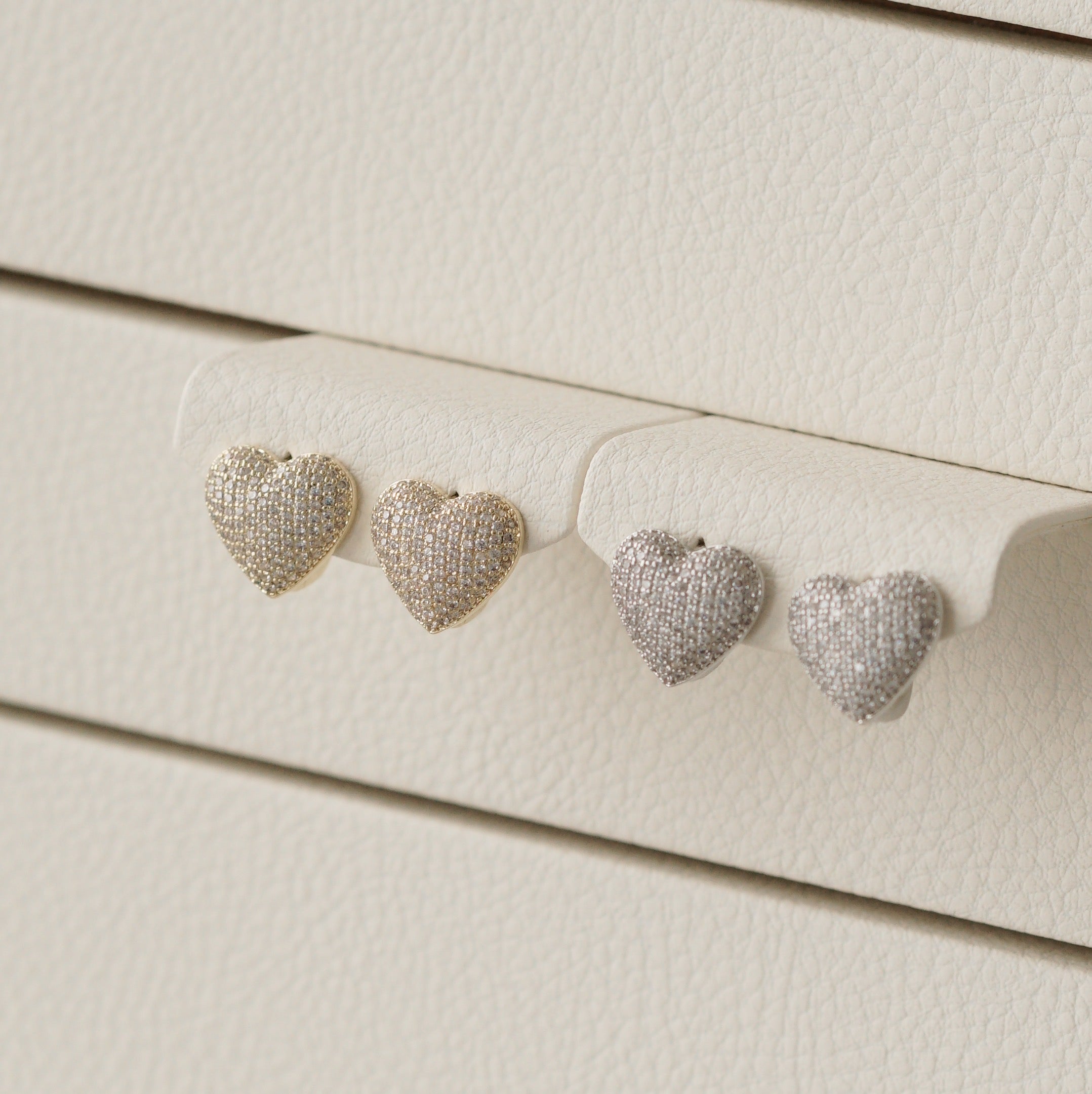 Add some love to your everyday look with our Lots of Love heart shaped hoops. Each earring is adorned with sparkling crystals, making it the perfect statement piece for any occasion. Wear your heart on your sleeves (or ears?!) and spread love with this cute and elegant accessory.